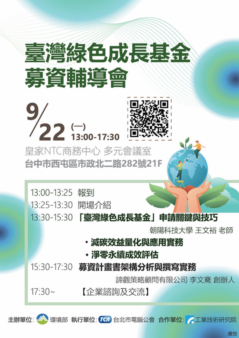 為協助具募資需求之淨零企業更精準掌握方案申請要點並提升計畫書撰寫品質,本方案特舉辦第二期輔導會,聚焦於實務操作,邀請淨零減碳專家學者及產業顧問,針對 「臺灣綠色成長基金申請關鍵與技巧」 及 「募資計畫書架構分析與撰寫實務」 兩大核心主題進行解析與案例分享,協助企業建立更具說服力的募資文件,提升企業對接投資的成功率。